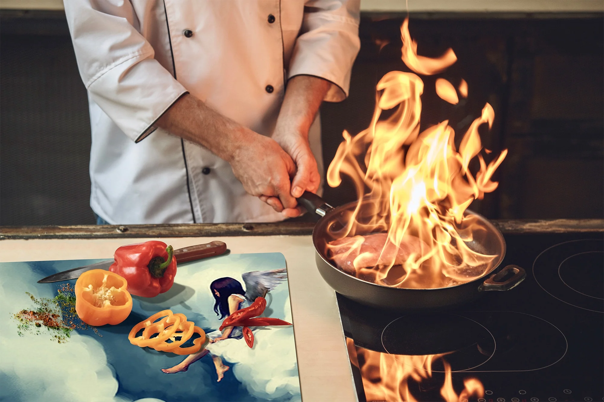 – TEMPERED GLASS Kitchen Board both highly functional and beautiful is a must-have in every modern home; its colorful, artistic designs bring a sleek and contemporary style to your kitchen or dining area